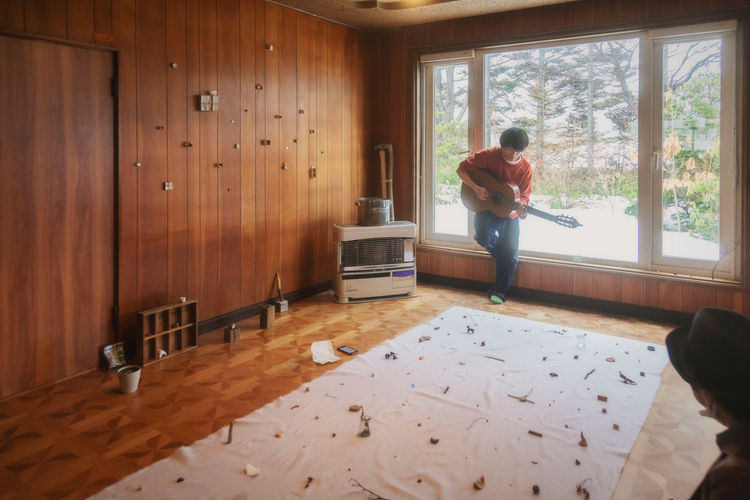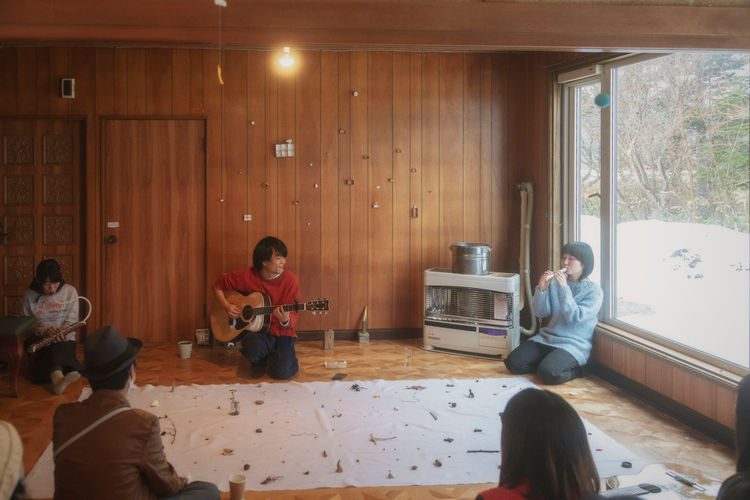 展示最終日には、東京から鈴木健太さん(山二つ)と坂藤加菜さん(山二つ)が来てくれて、ライブをしてくれました。